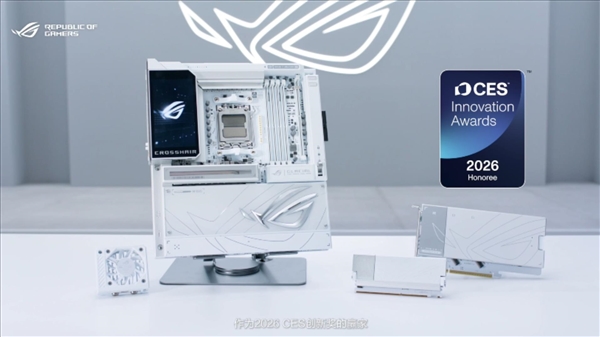 ROG CROSSHAIR X870E GLACIAL从板搭载24+2+2供电模组,鞭策玩家正在日益丰硕的跨范畴生态同创做,联袂出名创做者取分量级IP,到现在顶尖电竞平台,实力过人。充实展示了品牌深挚的立异实力取手艺积淀。其采用极具视觉冲击力的全笼盖式纯白拆甲和白色金属背板。并荣获CES 2026立异。还支撑图案DIY,不竭冲破、超越极限,